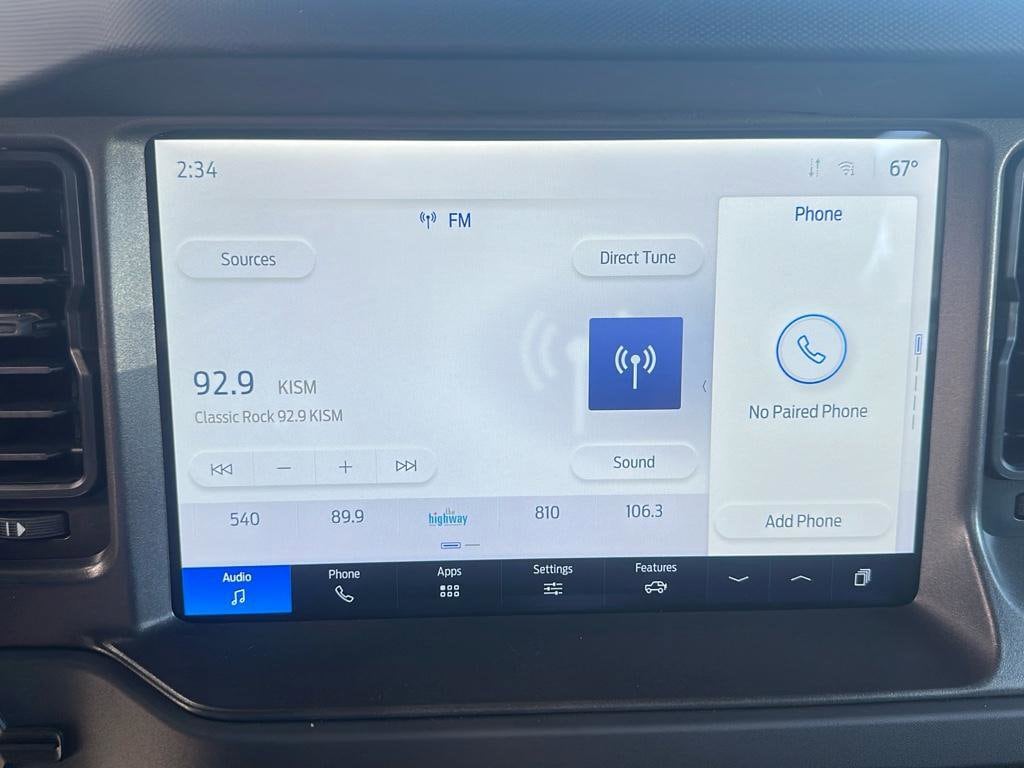 Bluetooth technology is built into this vehicle, keeping your hands on the steering wheel and your focus on the road. Apple CarPlay: Seamless smartphone integration for this model - stay connected and entertained on the go! An off-road package is installed on this vehicle so you are ready for your four-wheeling best. It offers Android Auto for seamless smartphone integration. Protect this vehicle from unwanted accidents with a cutting edge backup camera system. This unit is painted with a durable multi-coat tan finish. When you encounter slick or muddy roads, you can engage the four wheel drive on this 1/2 ton suv and drive with confidence. The Ford Bronco has a 4 Cyl, 2.3L high output engine. The high efficiency automatic transmission shifts smoothly and allows you to relax while driving. Anti-lock brakes will help you stop in an emergency. The Electronic Stability Control will keep you on your intended path.